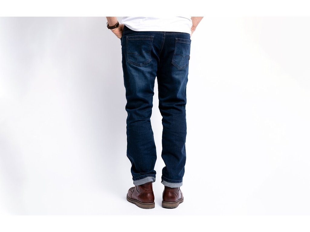 Ironhead Mechanix Used Dark Blue XTM® jsou slim-fit džíny s certifikací AAA, podšívkou z XTM-Fiber® a chrániči kolen a boků. Vyrobeny z robustního strečového denimu, jsou vodoodpudivé, prodyšné a velmi pohodlné.